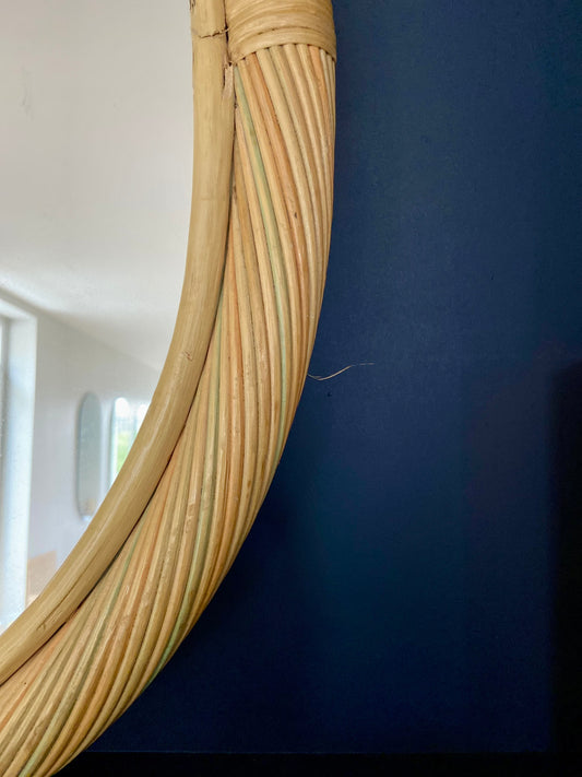 Fauteuil en rotin pivotant et son repose-pieds - vers 1960.