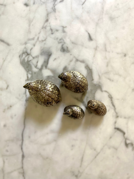 Duo de salière & poivrière "Petites cailles" en argent - 1960.
