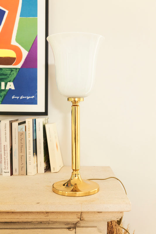 Grande lampe "Tulipe" en verre et laiton - vers 1960.