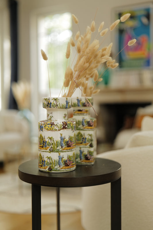 Paire de vases en céramique à motifs et personnages