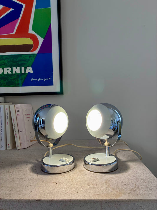 Paire de lampes "Eye-ball" en métal chromé - 1970.