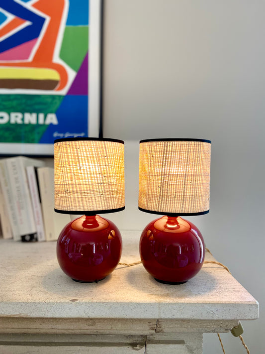 Pair of lamps signed FADO in enamelled terracotta - "Autumn mood"