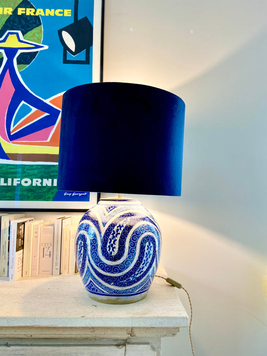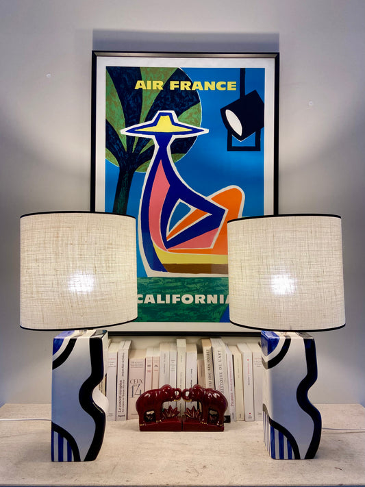 Pair of lamps signed FADO in enamelled terracotta - "Blue mood"