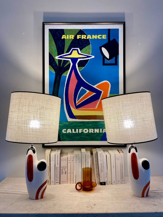 Pair of ceramic "POP" bedside lamps - circa 1980.