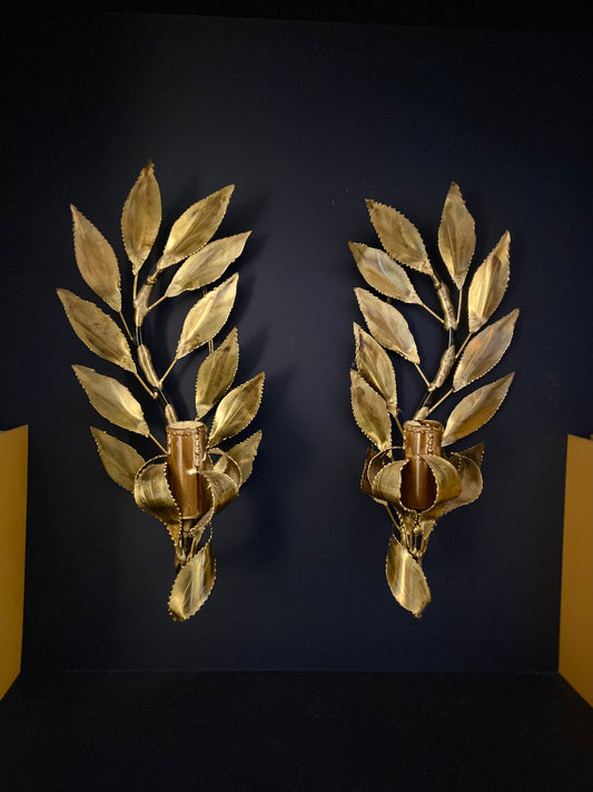 Pair of "Maison FlorArt" gilded metal wall lights - circa 1960.
