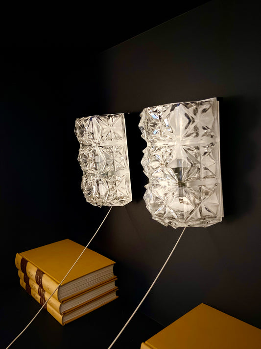 Pair of "Frosted" cut glass wall lights - circa 1970