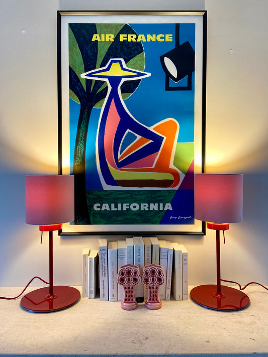 Pair of "Pink" lamps in burgundy metal - 1980.